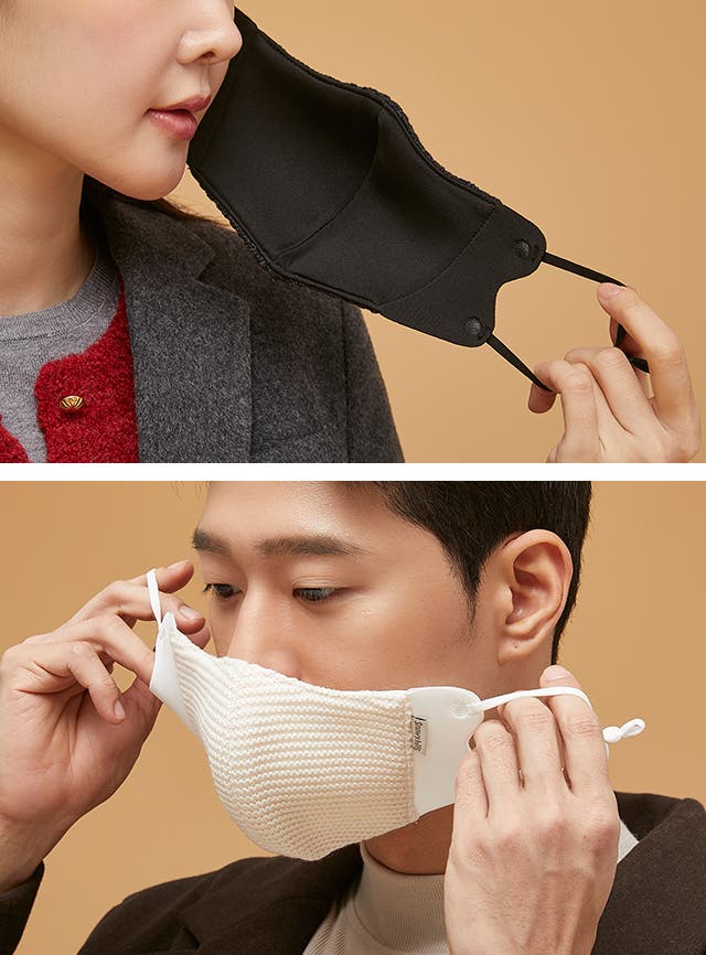 オーバーフィットニットマスクは冬から春まで使用のために紫外線遮断テストを完了したマスクで、チクチクと照りつける冬の日差しも怖くありません。 そして軽い重さで長時間着用しても負担がありません。