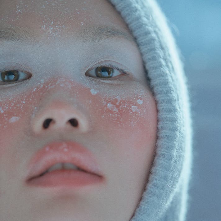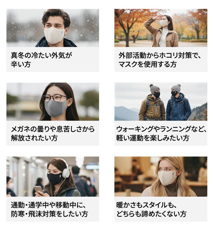 冷たい風で赤くなった鼻先、まもなく顔全体が冷えてきます。 真冬の寒さは顔から始まります。