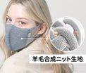 羊毛混紡糸でニット製造技法で織った防寒マスクの出番。 ニット1本1本に羊毛混紡糸と組み合わせが宿っています。 着た瞬間柔らかく暖かいです。