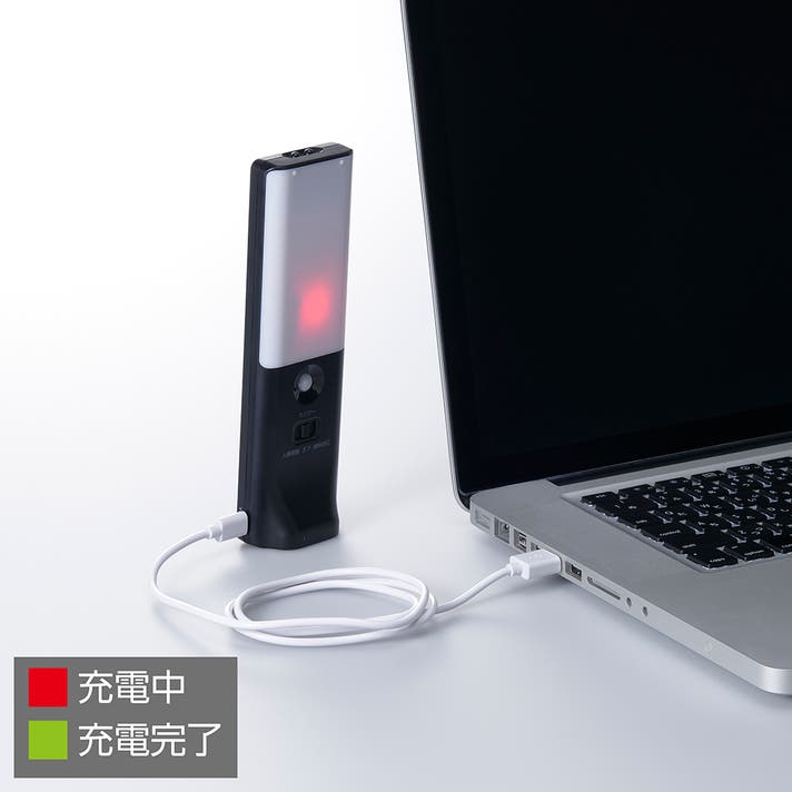 面倒な乾電池の交換はもう必要ありません。パソコンやACアダプターから手軽に充電できます。充電中はランプが赤色に点灯し、充電が完了すると緑色に変わるので、充電状況が一目でわかって便利です。「いざという時に電池切れ」という心配がありません。1回のフル充電で約1.5年使用可能です!(使用目安:センサーライト1日2回点灯、リモコン1日5回操作)