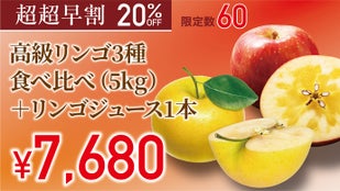 【超超早割】高級リンゴ3種食べ比べ(5kg)+リンゴジュース1本 20%off