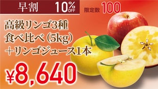 【早割】高級リンゴ3種食べ比べ(5kg)+リンゴジュース1本 10%off