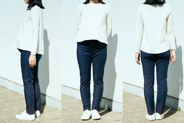 30代妊娠9ヶ月:妊婦なので、生地が柔らかくフィットする点が良かった。お腹周りが自由にサイズ調整できる点もうれしい。オールシーズン履けそうな生地も良い。