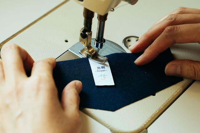 また、マチ部分の素材は「ストレッチポンチ」と呼ばれる特殊なニット生地。薄くて肌触りが良いのが特徴ですが、縫製作業には非常に高い技術を要します。プロの技術と経験を惜しみなく注ぎ込み、2023年春にようやくRinpan初号が誕生しました。