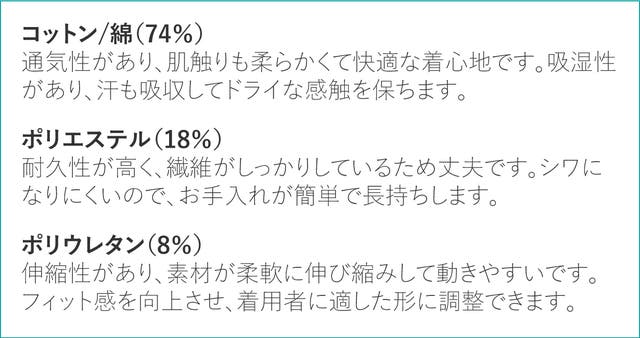 素材混率:綿74% ポリエステル18% ポリウレタン8%