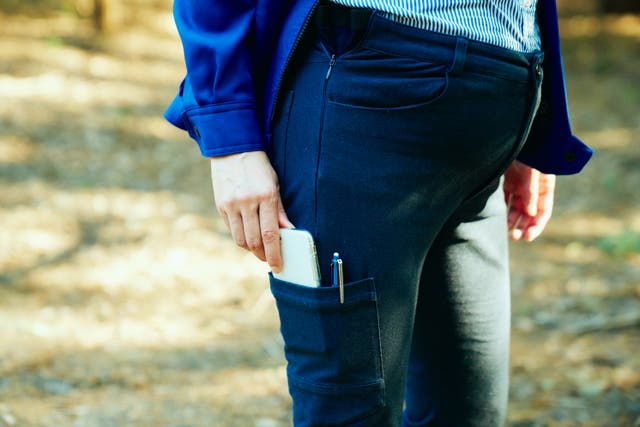 おしりのポケットにスマートフォンを入れて、しゃがんだ時に落とした経験はありませんか? 働く女性をイメージして、パンツの右サイドに深めのカーゴポケットを付けました。ペンや小ぶりの手帳、スマホもすっぽり入って落下の心配もありません。