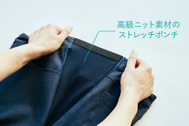 優しい肌触りで体を包み込みつつ、立ったりしゃがんだりしても足腰がラクに動かせます。