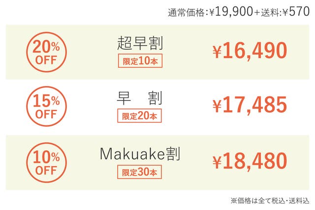 【一般販売予定価格¥19,900_税込+送料¥570の20%off¥15,920_税込+送料¥570】