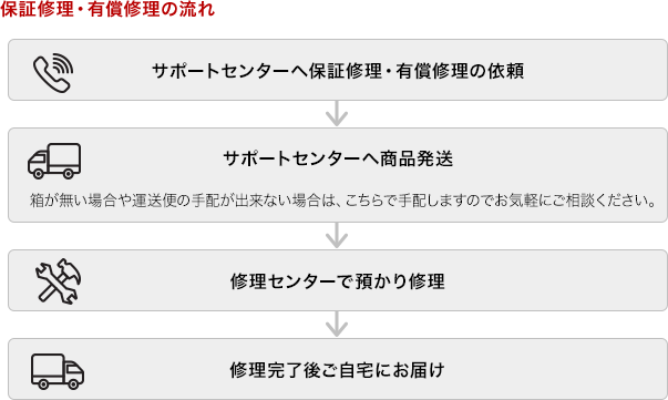 又、アフターサービスにつきましては、保証期間を過ぎましても有償にはなりますが修理等対応はさせていただきますので、下記サポートセンターまでお気軽にお問い合わせください。