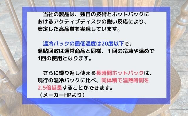 電子レンジに入れて1分10秒程温めて使うので(湯での温めも可)