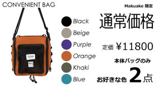 ※コンビニエントバッグはブラック、ベージュ、パープル、オレンジ、カーキ、ブルーからお好きな色2点。
