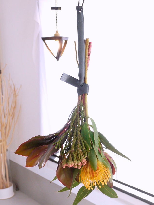 そこで本革の良さを身短に感じることもでき、簡単に生活に取り込めるドライフラワーホルダーを考案しました。