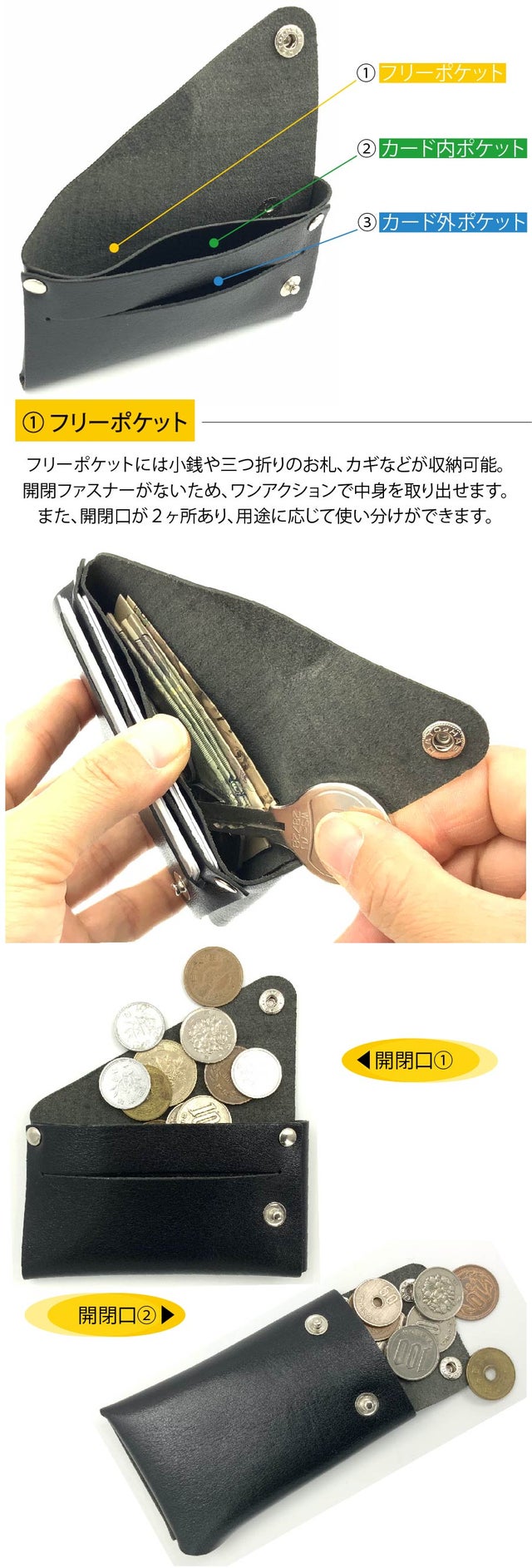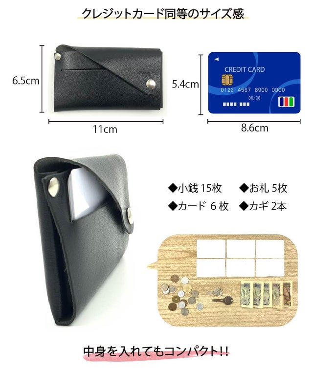 - 見た目以上の収納力!極小サイズなのに小銭15枚+お札5枚+カード6枚の圧倒的収納。