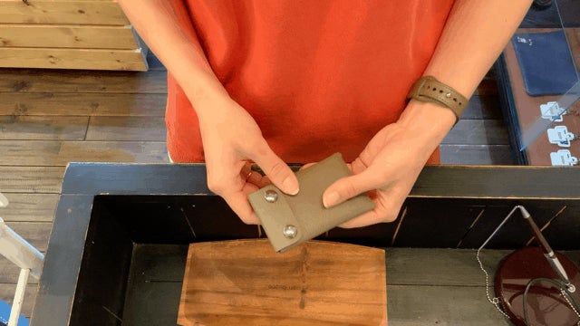 - 無駄を省き、シンプルデザインを追求。革自体の良さを活かし,一針も縫うことなく仕立てました。