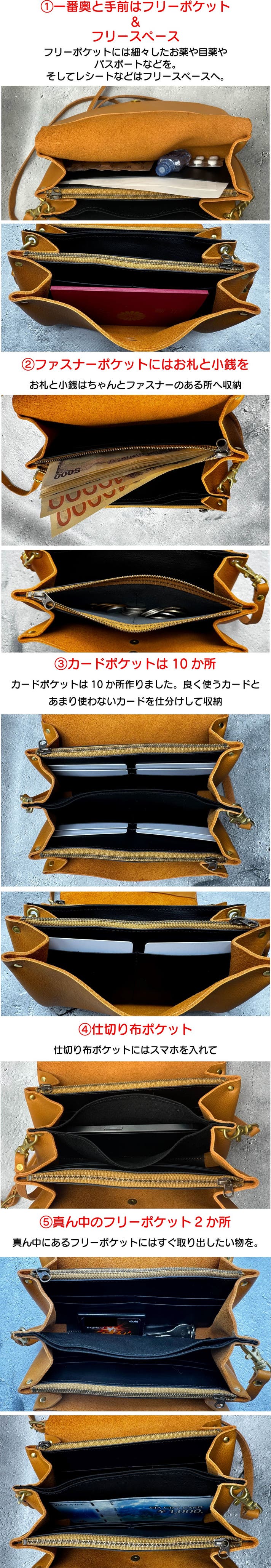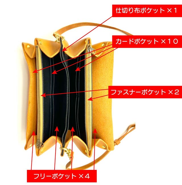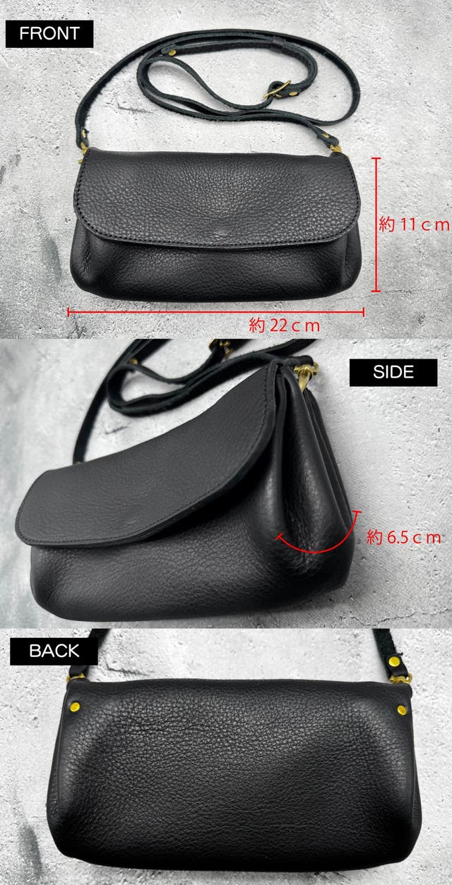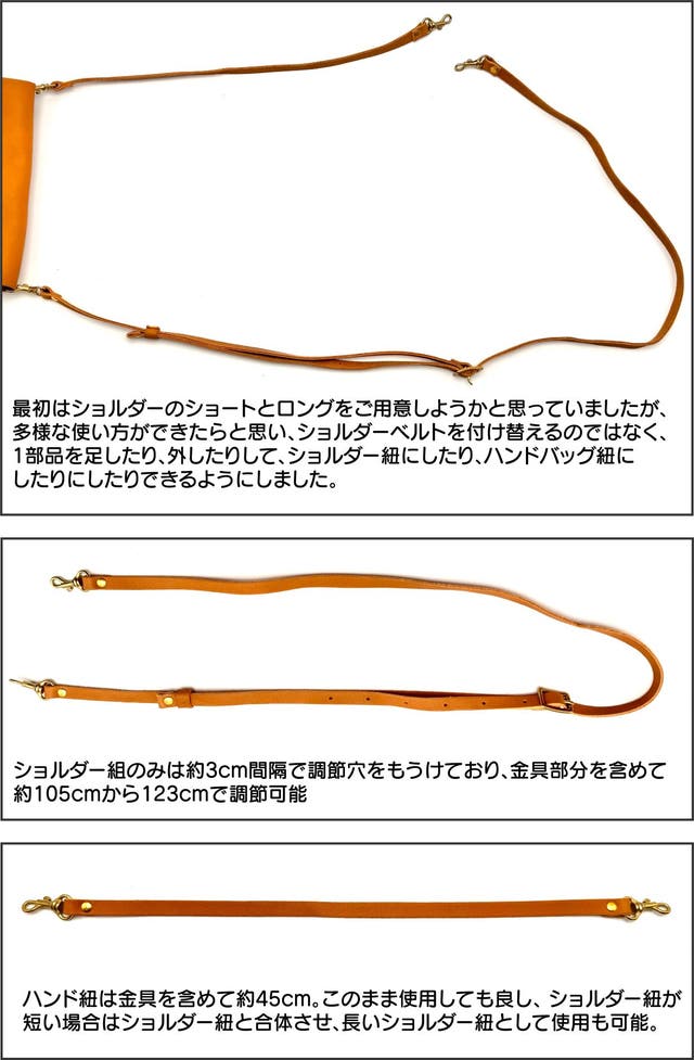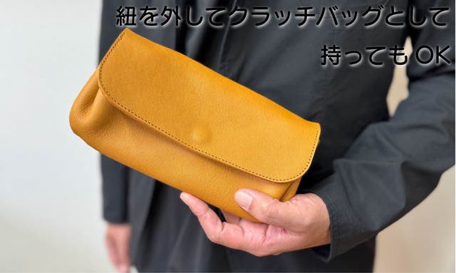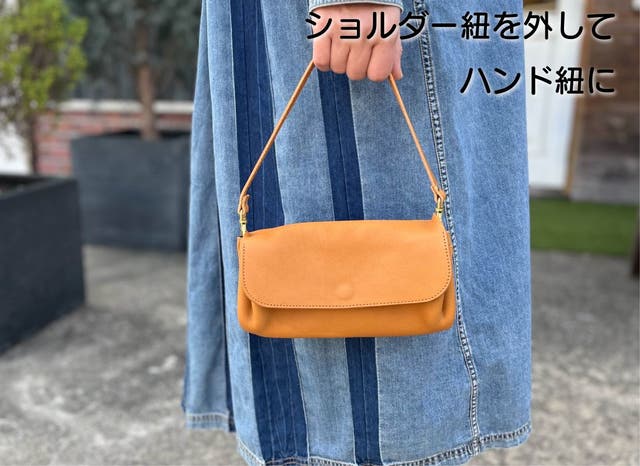 ショルダー紐にも施している革を使用するので服に革くずが付く心配がありません!