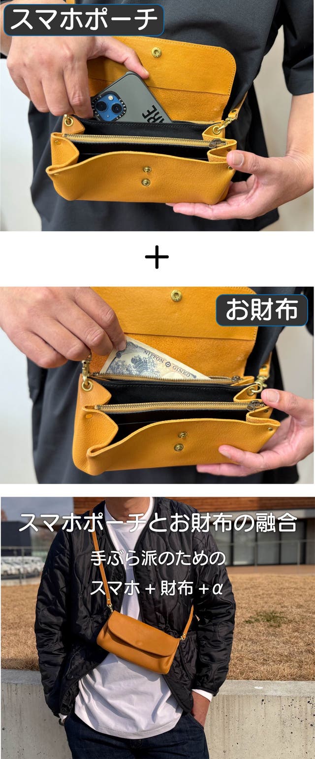 - 手ぶら派のために製作。これでスマホもお金もサッと取り出せる!アレ?どこいった?を無くそう!