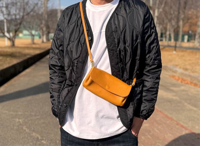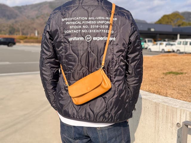 革の裏がみえる作りのショルダーなので、物を入れた時に革の毛羽が付くのを懸念します。