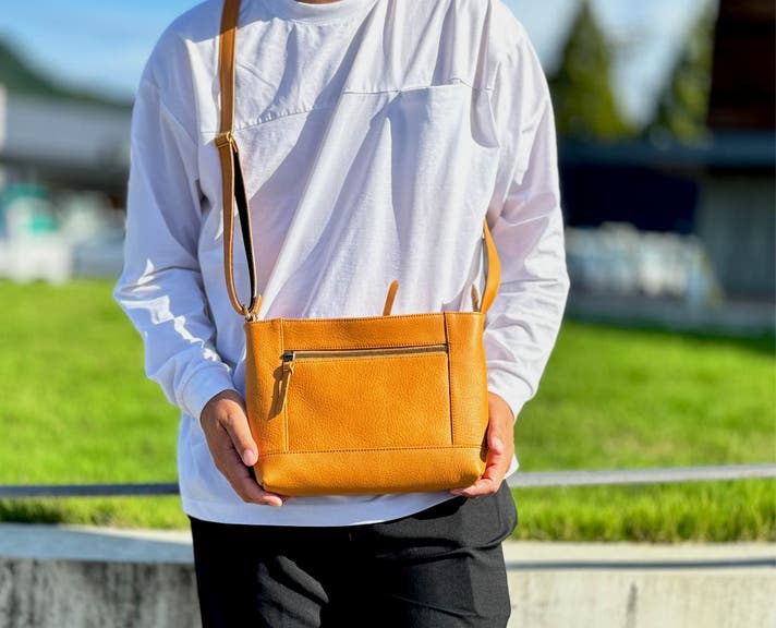 ちょい持ちしながら、格好良く持てる『本革サコッシュ』完成!