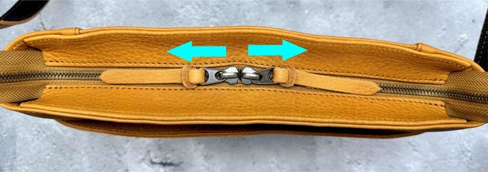 「ダブルファスナー」仕様で右利きでも左利きでも開閉しやすいようにしました。