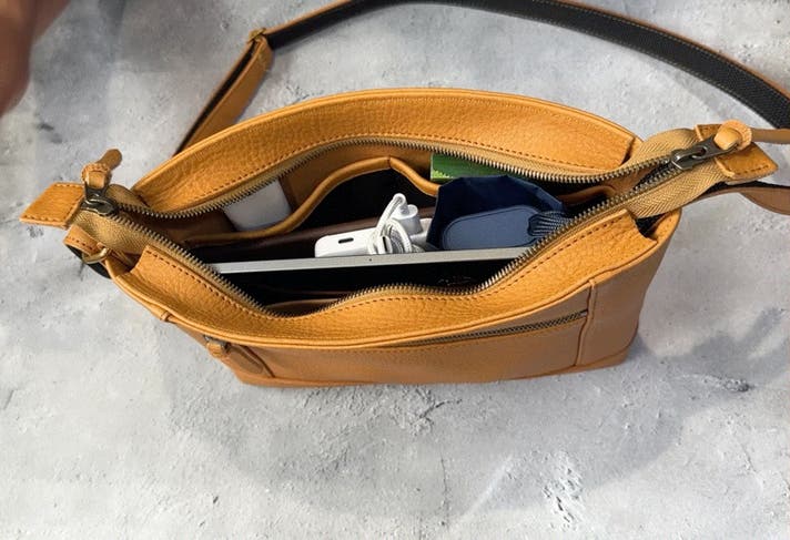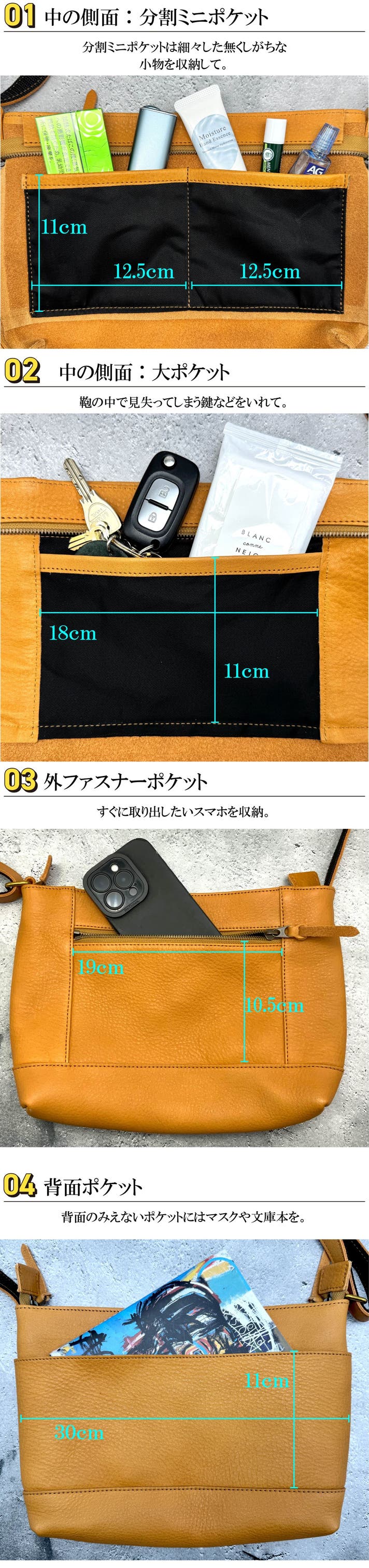 サコッシュといえば、マチがない物が多いですが、この本革サコッシュは5cmのマチでしっかり収納!