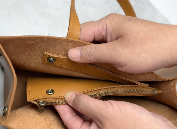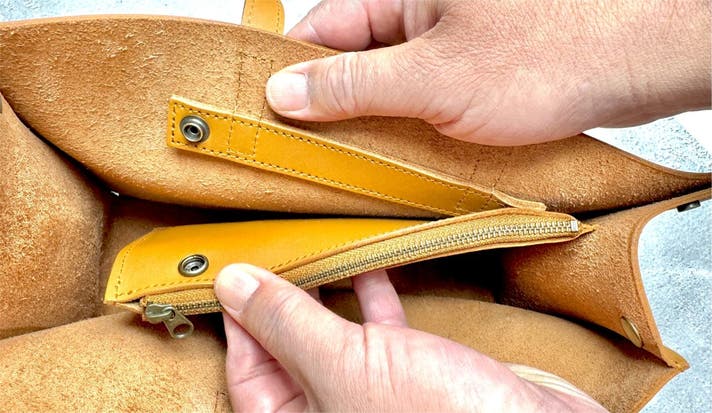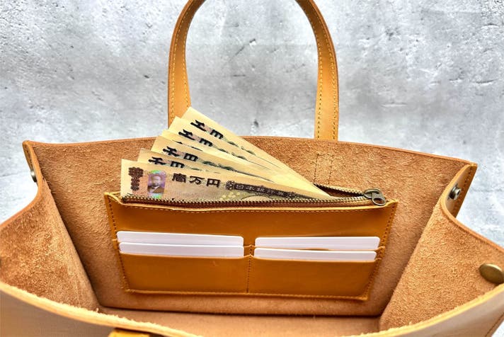 - シンプルで実用的設計!付け替え可能な財布パーツとポケットパーツ。細かな工夫を詰め込んだトート