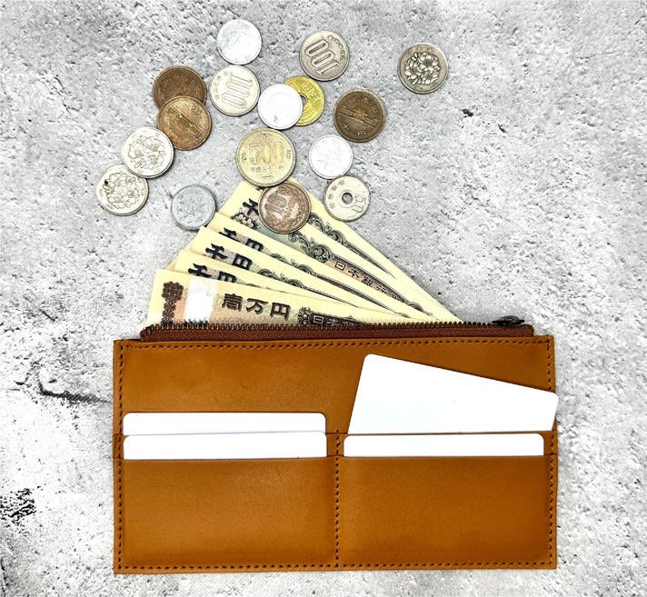 財布を持ち歩かない時は財布をセットして、お札、小銭、カードを入れよう