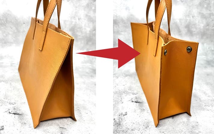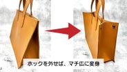 サイドホックがあるので、荷物の量でマチを調節することが出来る。