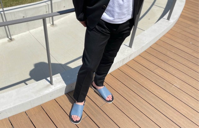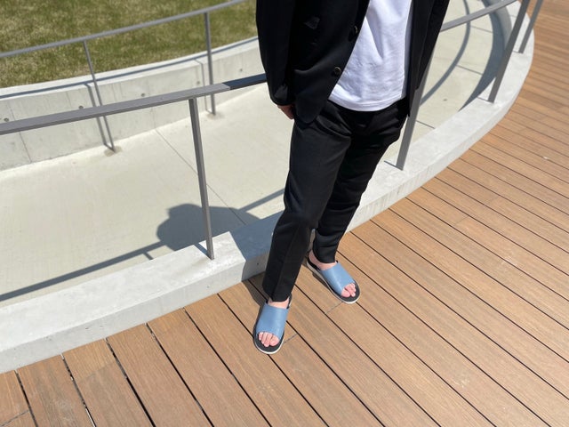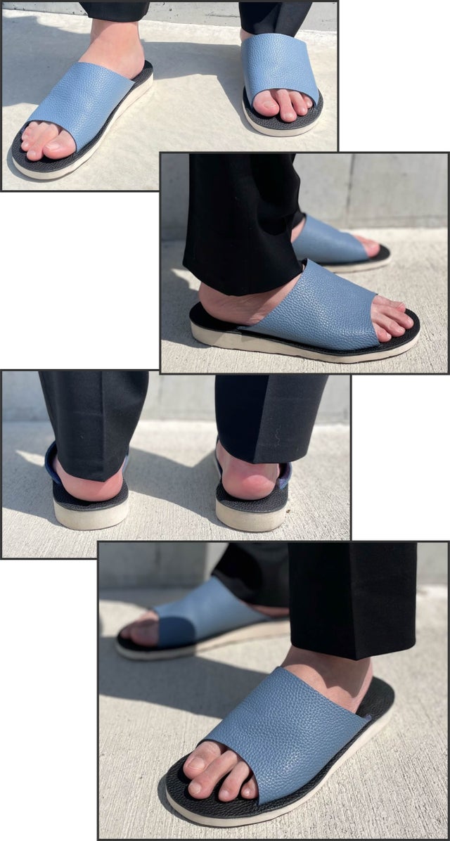 サンダル=夏の履き物を覆したく、オールシーズン履けるよう、形、革色を決めました。