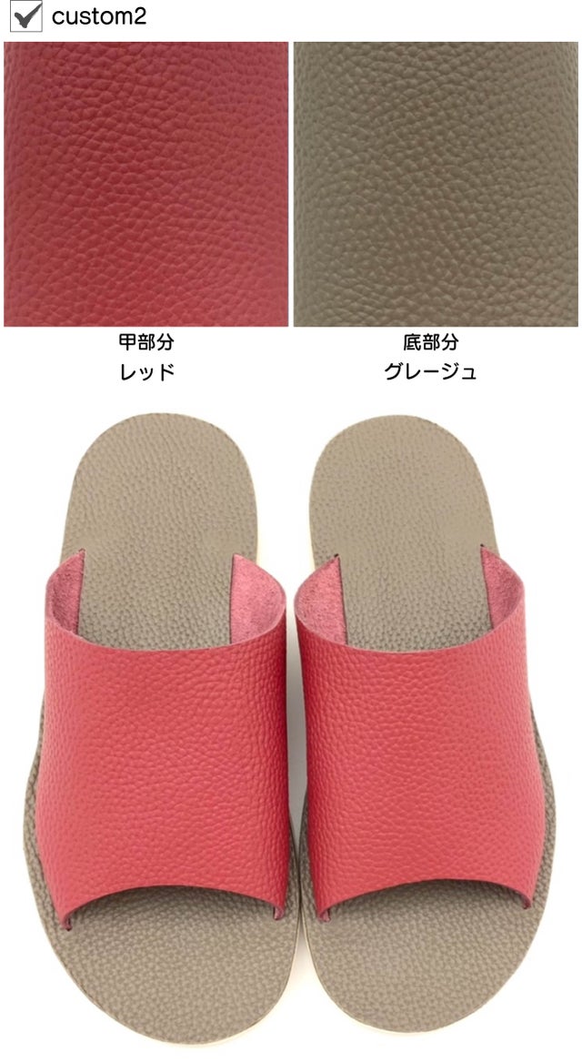 革パーツが甲部分と底部分の2パーツからできており、5色からお選びいただけます。
