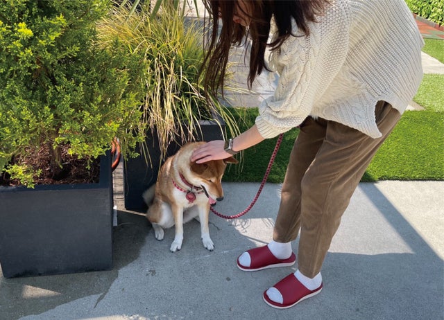 でもレザーなら、カジュアルさもあり、上品でラグジュアリーさも兼ね添えている。お出掛けやお散歩、近所履き等の普段使いまで対応してくれる優れもの。