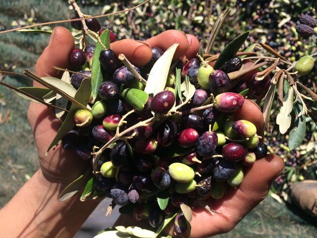 丁寧に手摘みされたオリーブ