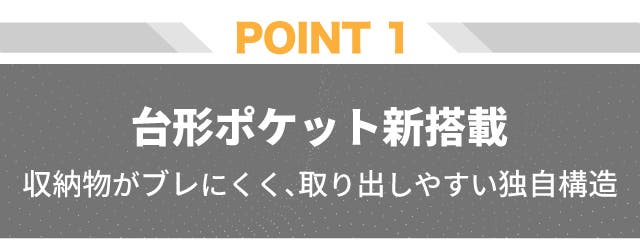 - 【実用新案申請中】直観的収納と揺れの抑制を両立した新発想の「台形ポケット」搭載。