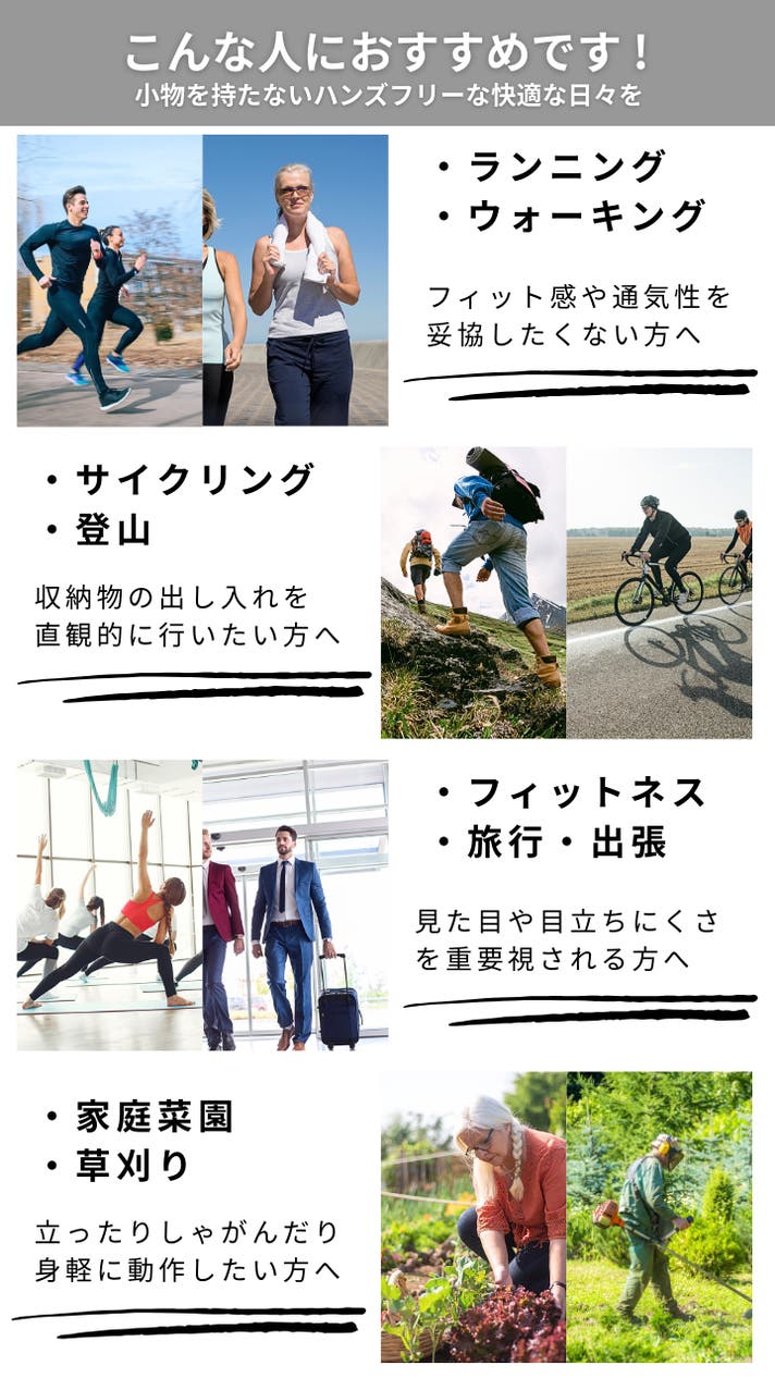 私自身も毎日のウォーキングやランニングで使用していますが、手ぶらで動ける自由さや身体にしっかりフィットする感覚は、従来の製品にはなかった体験です。