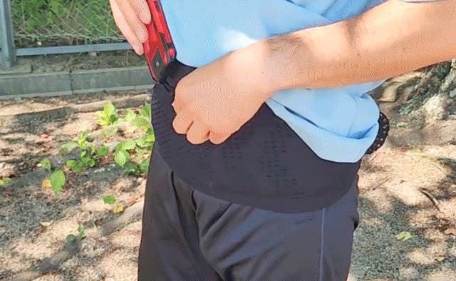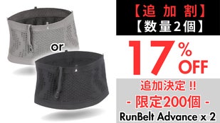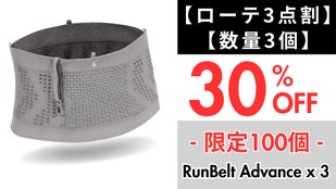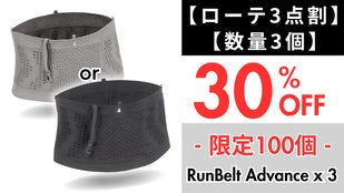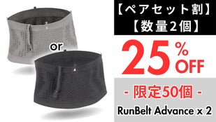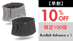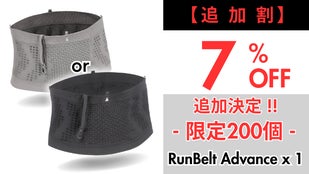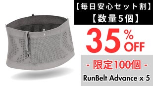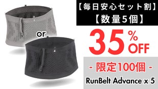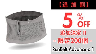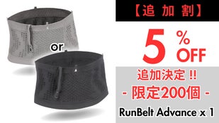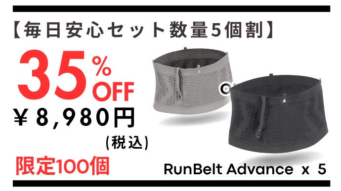 RunBelt Advanceは、一般的な細いベルト式とは異なり、ウエスト全体を「面」で包み込む“腹巻き型フィット構造”を採用。