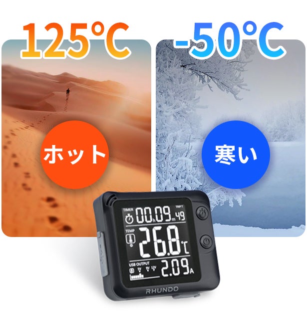-50℃から125℃までの極端な環境でも温度を測定できます。酷暑の夏でも雪の降る冬でも測温可能です。