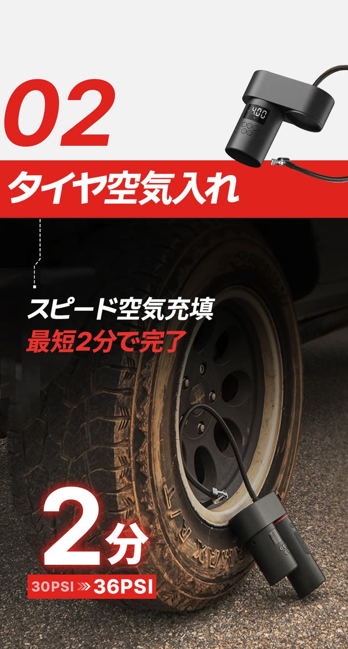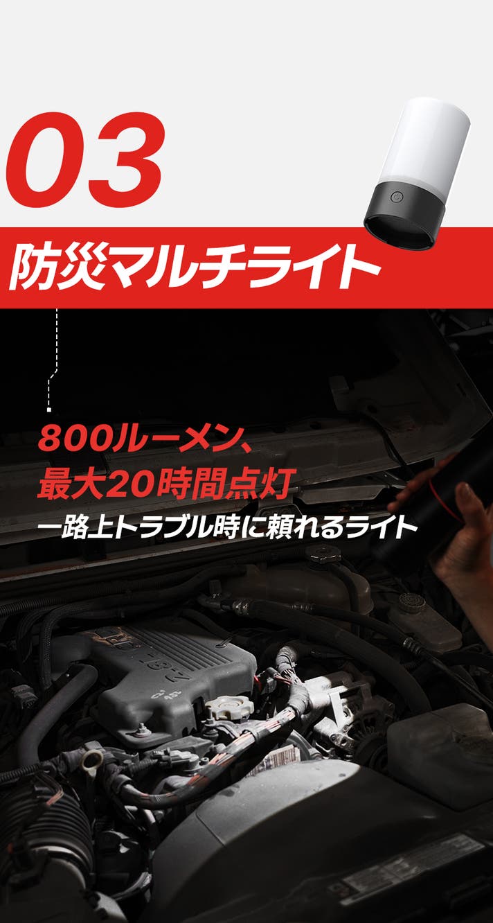 ジャンプスターター・タイヤ空気入れ・防災マルチライト