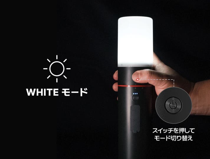 ライトモードは WHITE / RED / BLUE / SOS モードの4種類。