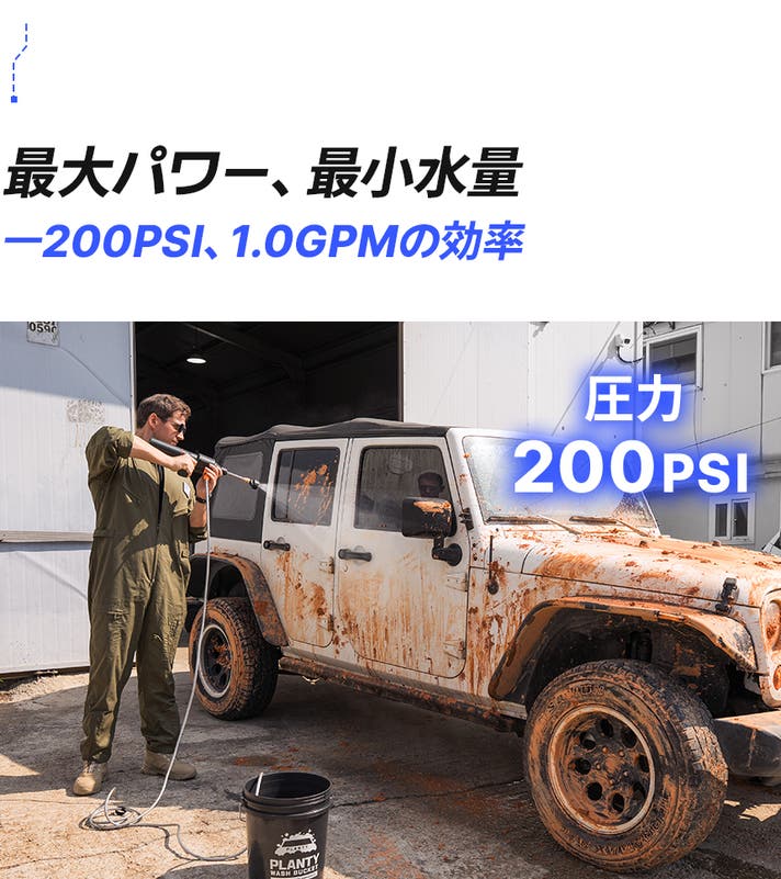 200PSIの強力な圧力と、毎分1.0ガロン(4.0L/min)の精密な流量。