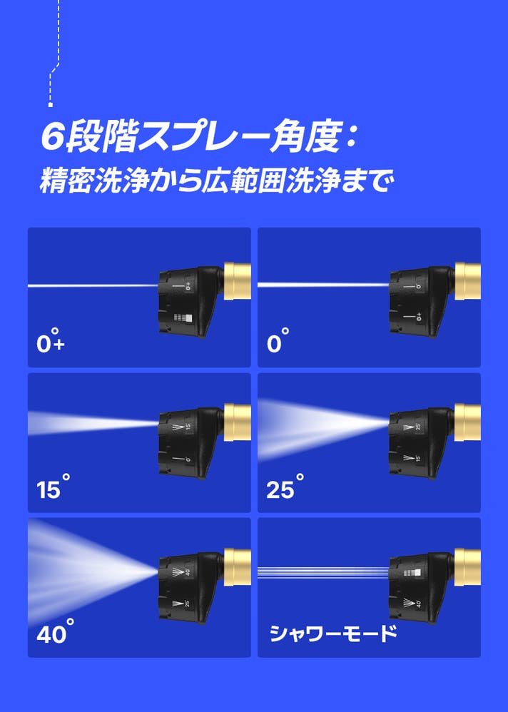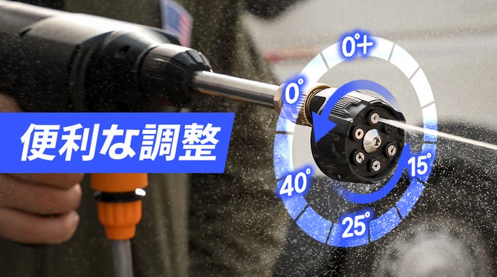 ROAD MATE 高圧洗浄機は、6段階の調整可能なスプレー角度を搭載。