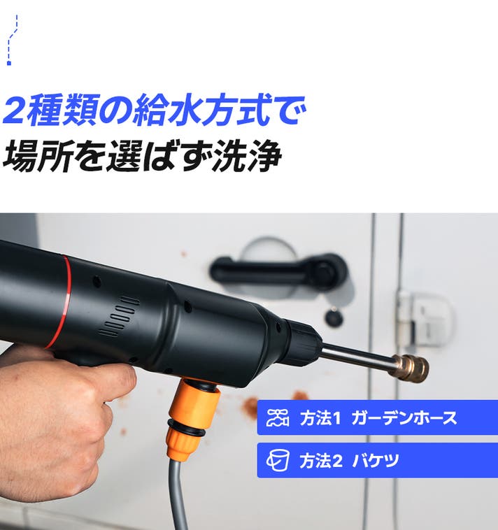パワフルな高圧噴射で頑固な汚れを一気に洗い流します。