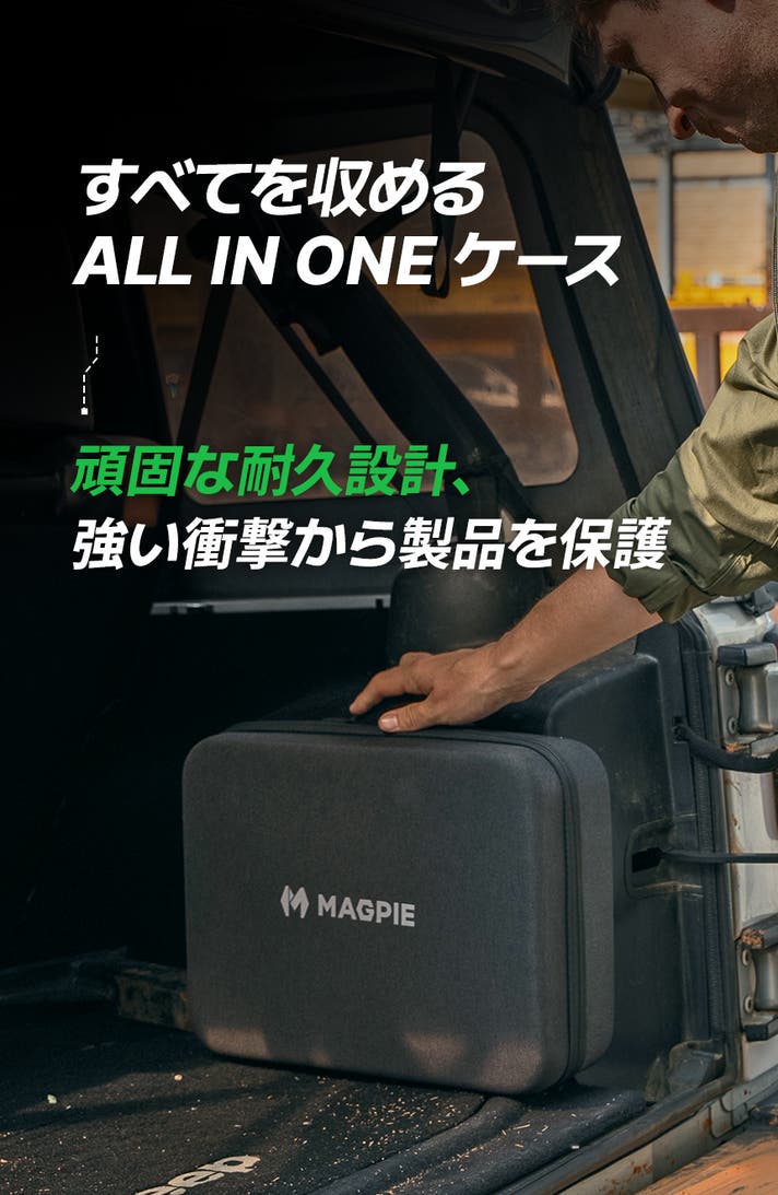 ガレージでの作業からアウトドアまで、さまざまな環境で活躍する、