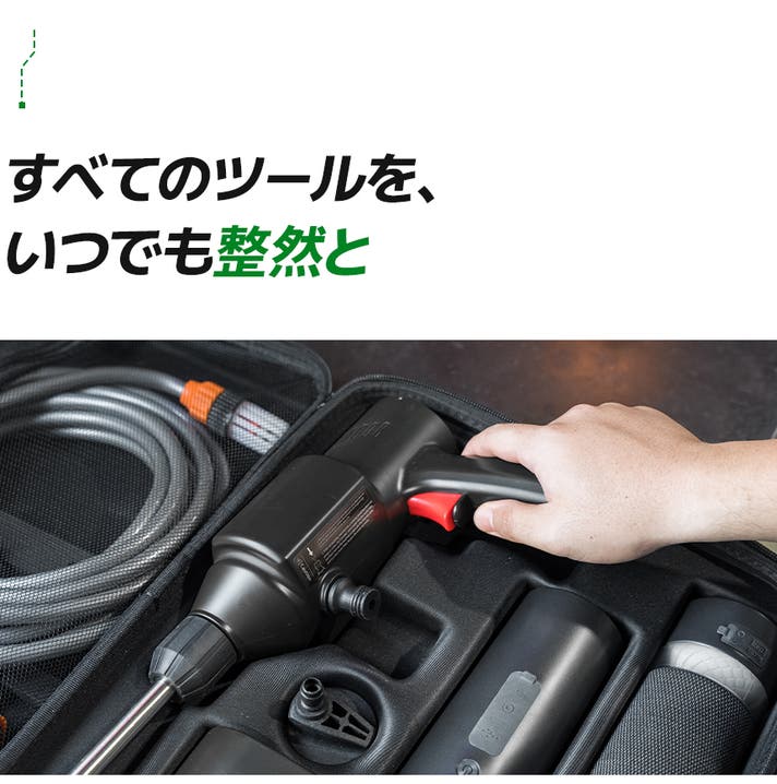 - 必要なツールがたった1つのケースに収まり、いつでもサポートしてくれる頼もしい車両ライフキット