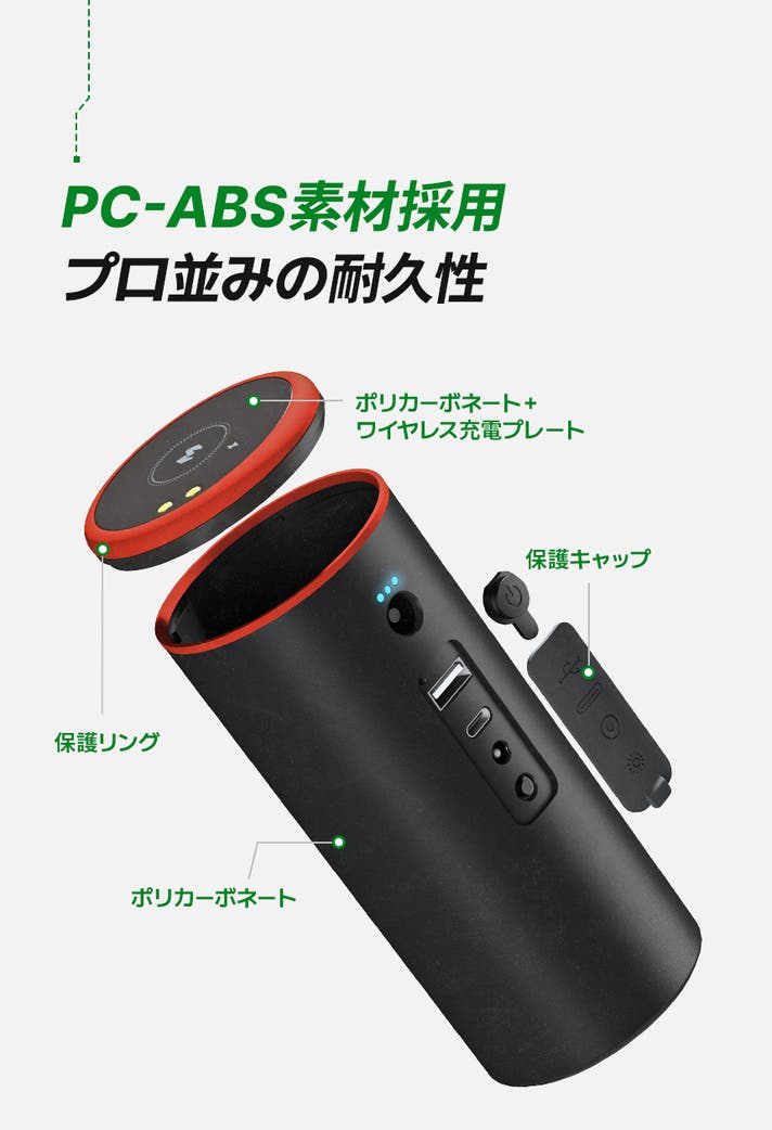 製品の外装には、強度に優れたポリカーボネートと柔軟性のあるABSを組み合わせた「PC-ABS素材」を採用。