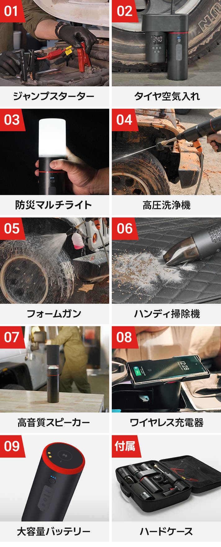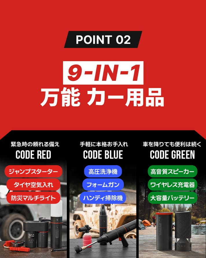 緊急時に必要なジャンプスターターから、日常用品のワイヤレス充電器まで。