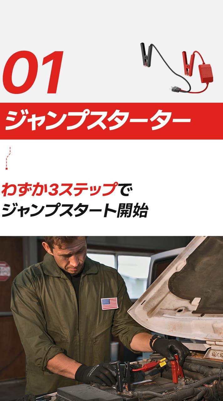 最大6.0Lガソリン / 3.0Lディーゼルエンジン対応のジャンプスターター、