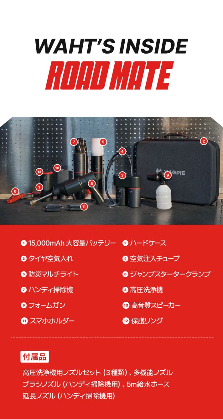 あなたのカーライフのための 9-IN-1 究極キット、ROAD MATEをご紹介します。