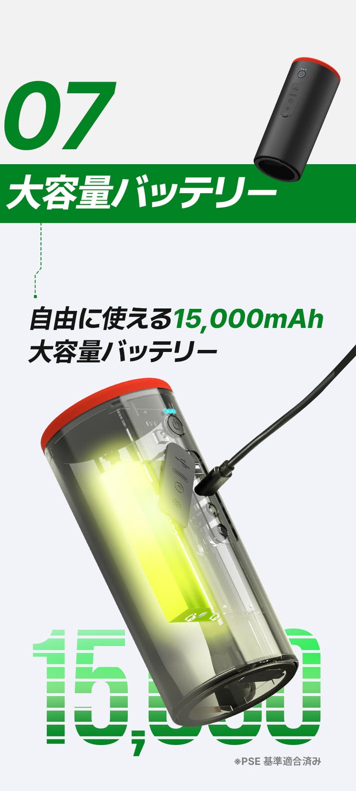 - ワンタッチでモジュール交換 × 15,000mAh大容量バッテリーで優れた電力を供給