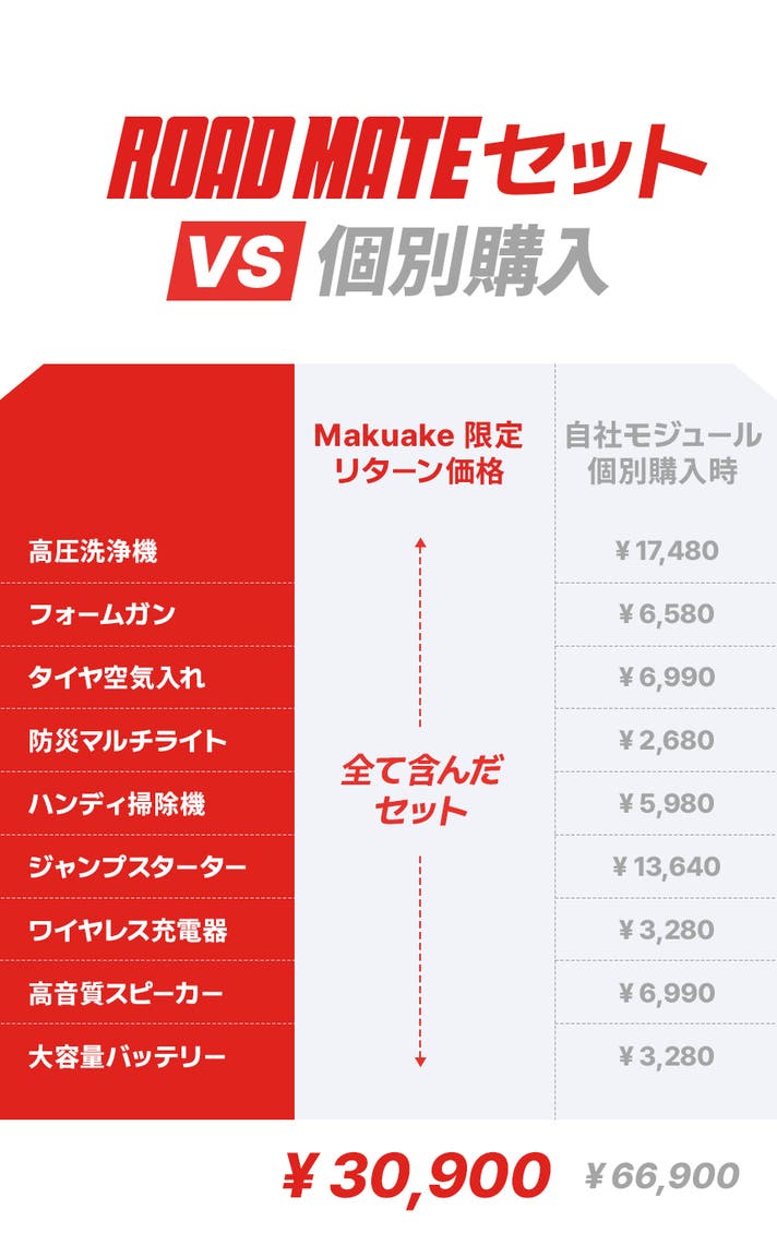 ROAD MATEは3つの「CODE RED」モジュールを用意しました。