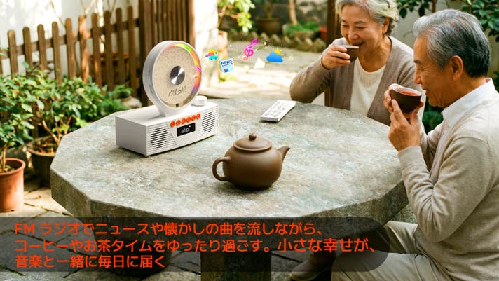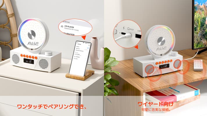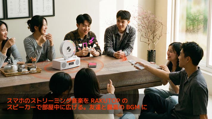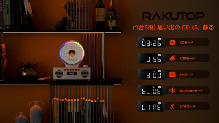 【1台5役】思い出のCDが最新技術で蘇る。360°LEDライト搭載、Bluetooth対応の多機能CDプレーヤー「RAKUTOP」