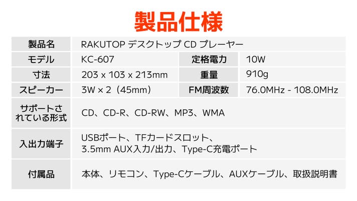 【Makuake価格20%OFF 多機能CDプレーヤー「RAKUTOP(KC-607)」×1】